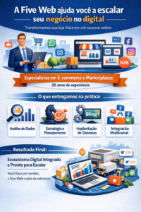 e-commerce próprio, marketplaces, redes sociais, WhatsApp e vendas B2B (atacado) — tudo de forma integrada, organizada e sustentável.